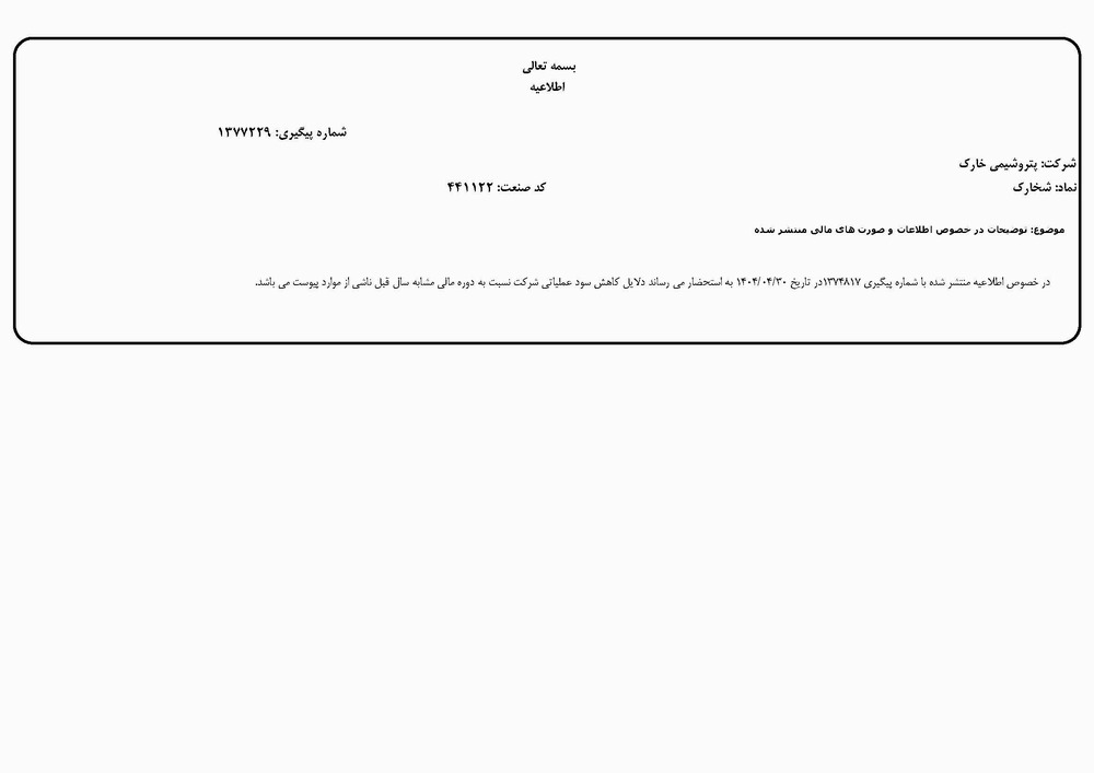 توضیحات در خصوص اطلاعات و صورت های مالی منتشر شده